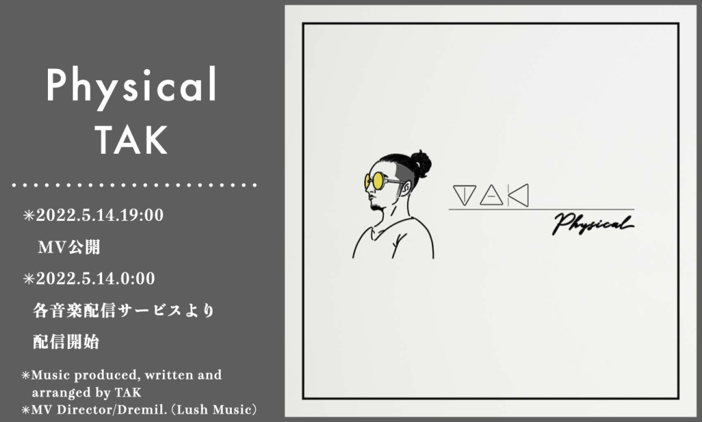 TAK 最新MV 『Physical』2022.5.14(土)19:00公開 映像制作はDremil.