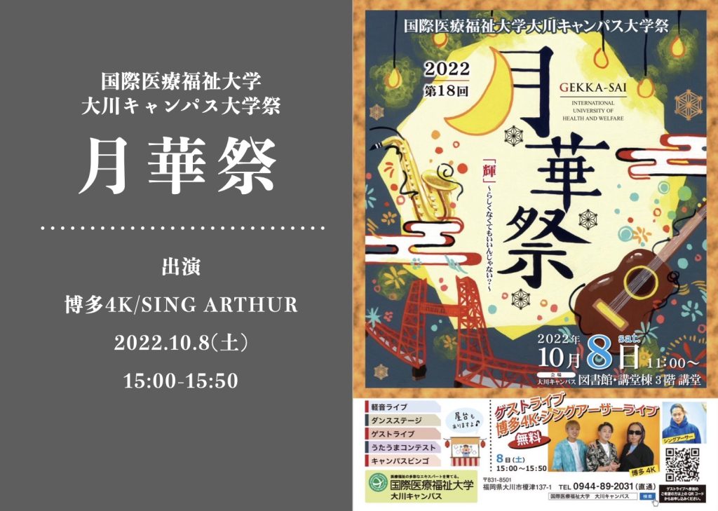 2022年10月8日(土) 博多4K、SING ARTHUR 国際医療福祉大学大学祭にてライブ開催