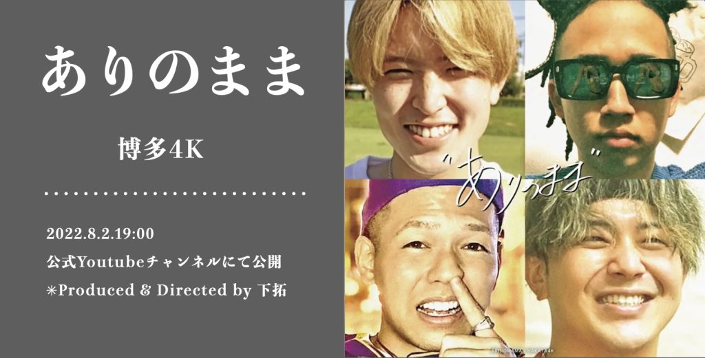 最新MV公開! 博多4K『ありのまま』2022年8月2日より公式Youtubeチャンネルにて