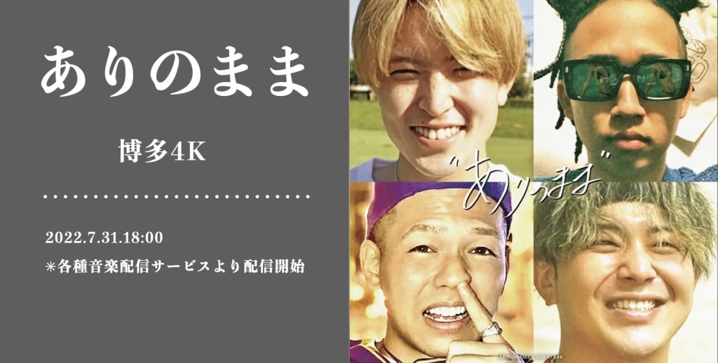 博多4K 最新シングル『ありのまま』2022年7月31日より配信リリース開始