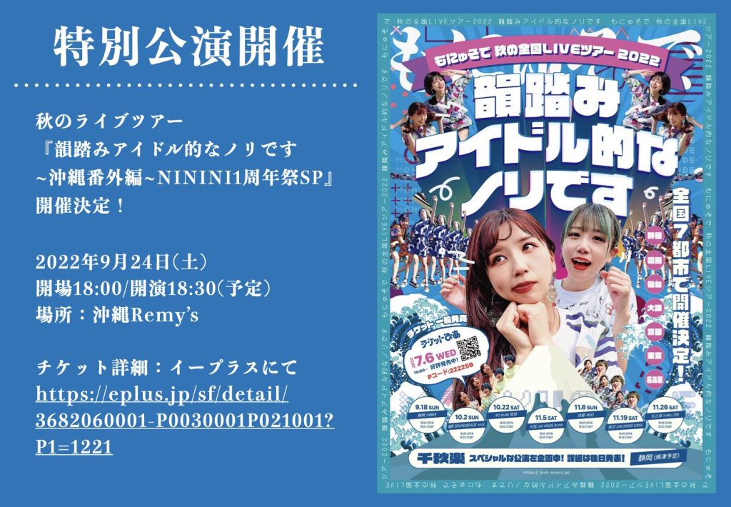 9月24日(土) 特別公演『韻踏みアイドル的なノリです~沖縄番外編~NININI1周年祭SP』開催!