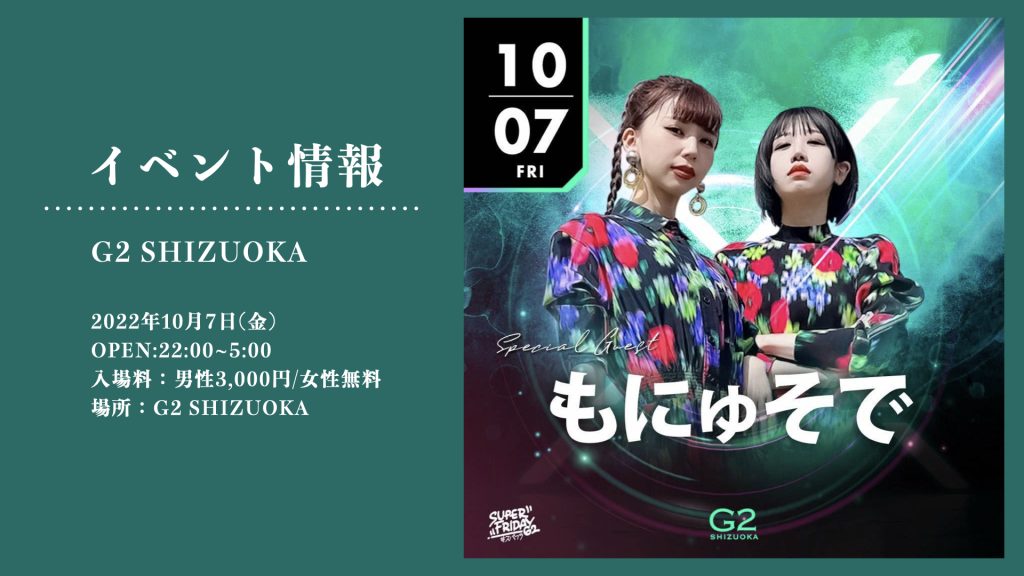 2022年10月7日(金) 『G2 SHIZUOKA』もにゅそで スペシャルゲスト出演決定
